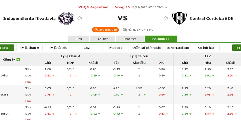 Trên đây là những nhận định và soi kèo bóng đá chuyên sâu cho màn thư hùng giữa Independiente Rivadavia vs Central Cordoba diễn ra vào lúc 07h15 ngày 11/11/2025.